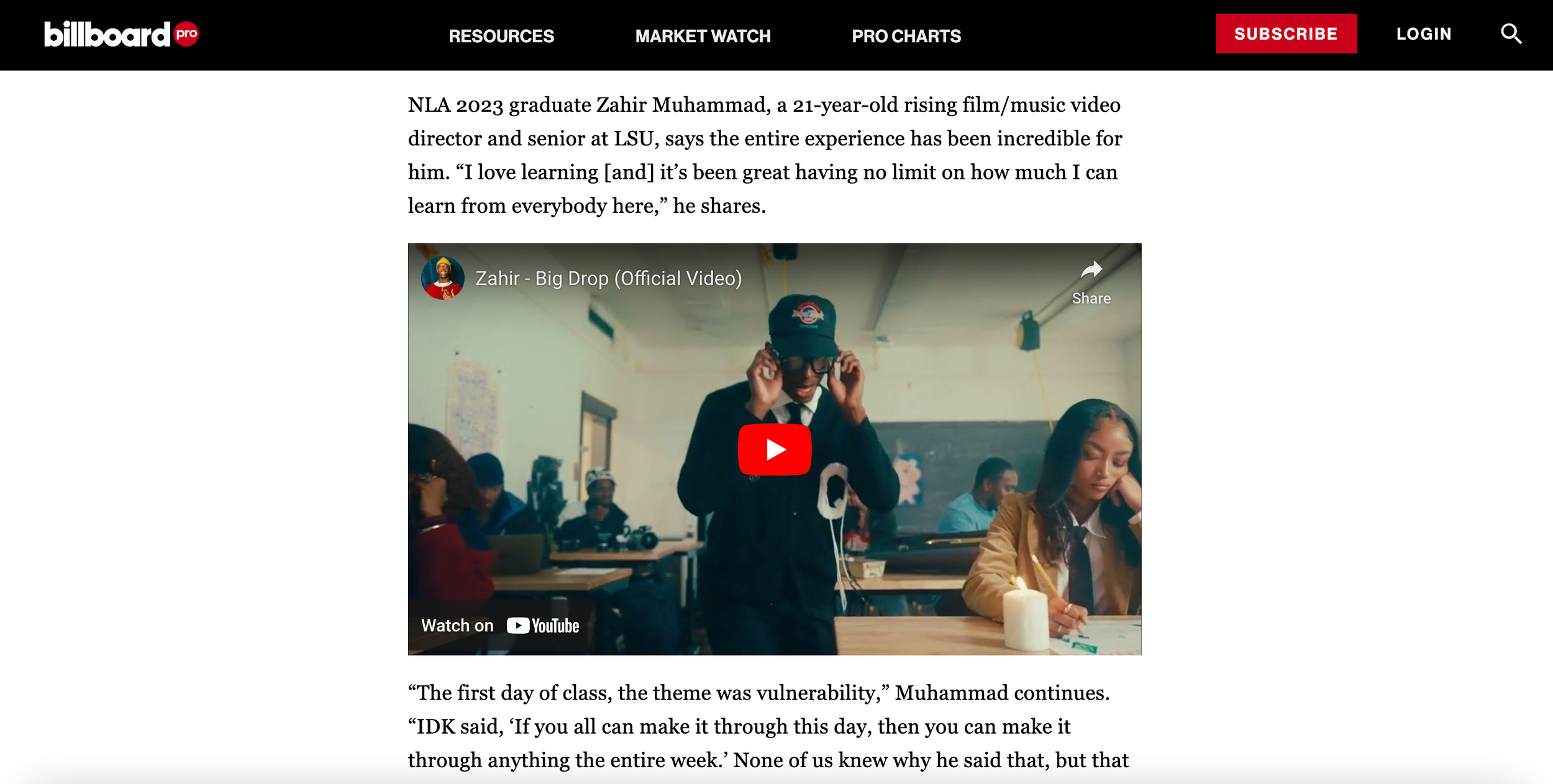 NLA 2023 graduate Zahir Muhammad, a 21-year-old rising film/music video director and senior at LSU, says the entire experience has been incredible for him. “I love learning [and] it’s been great having no limit on how much I can learn from everybody here,” he shares.